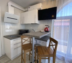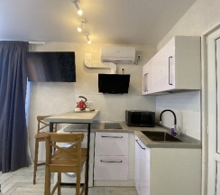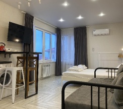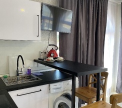 Бронировали номер через рабочий агрегатор от организации, как же нам повезло, что мы попали именно в эти апартаменты. От моря 15 минут пешком. В квартире есть все необходимое (стиралка, утюг и микроволновка), чисто и уютно. Рядом парковка самокатов.