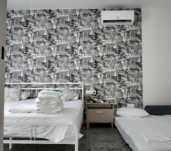 Хороший чистый отель, все понравилось, хозяева встретили с аэропорта, до моря минут 15 спокойным шагом, подарили подарок после отдыха, в номерах есть стиральная машина, есть мангальная зона