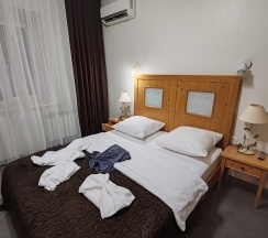 Отличный отель! Чисто, уютно, всё новое, есть парковка. Ещё и трёхразовое питание, вообще шикарно. Жили в 306 номере. Одну звезду снял за недочёты, которые можно поправить. Во-первых расположение розеток - неудобное, у стола нет розетки для чайника, ставили на холодильник чтоб скипятить. Во-вторых, москитная сетка нужна пошире, комары залетают. В-третьих, крепление для лейки у душа сломано.