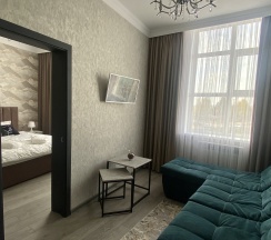 Современный и уютный двухкомнатный номер для размещения одного, двух или трех человек, который разделен на гостиную и спальную зоны. Площадь номера – 38 кв.м. В спальной зоне одна большая двуспальная кровать, прикроватные тумбы, торшеры, телевизор с плоским экраном и Smart TV, установлен бесплатный сейф.