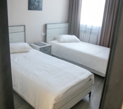 Трехместный однокомнатный номер с тремя отдельными кроватями. Уютный номер для размещения одного или двух или трех человек. Площадь номера 22 кв.м. В комнате имеется: холодильник, мини-бар, чайник, телефон, телевизор, шкаф. В ванной комнате: тропический душ, туалет, фен, бесплатные гигиенические принадлежности, комплект полотенец, халаты, тапочки. Комплимент от отеля - чай, кофе, вода, сахар в номере. Все номера оборудованы кондиционерами. Бесплатный Wi-Fi.