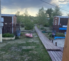 Отличная база отдыха с красивой ухоженной территорией и приветливыми хозяевами. В домиках есть всë, что необходимо, включая душ и туалет. Рядом с ними - беседки и мангалы. Очень чистенько. В трёх минутах неспешной ходьбы - чистая и тёплая река. Отдельное удовольствие доставила Тишина, которую нарушали только щебет птиц и отдалëнное кукареканье петухов) Прекрасное место для отдыха вдали от городского шума) И, конечно же, спасибо огромное хозяевам, что принимают путников с животными! Мы с нашими французскими бульдогами оценили гостеприимство!