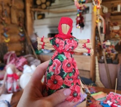 Евгения Николаевна по - доброму, очень душевно и атмосферно поведала нам об устройстве быта славянских семей. Конечно же, в каждом доме имелся "красный угол" с иконостасом (центр духовного мира). Именно там хозяева встречали гостей и трапезничали. Нам рассказали как "допекали" недоношенных младенцев. Мы узнали о разных видах тряпичных кукол - оберегов, историю и мастер - классах по их изготовлению ("Баба Яга", "Крупеничка", "Богач", "Пеленашка", "Зайчик на пальчик", "Филипповка", "Хороводница", "Кубышка-Травница", "На счастье", "Берегиня", "Ангел - хранитель", "СемьЯ" и "Птица Радость ). По желанию можно было даже купить уже готовую куклу на сувениры родным и близким.