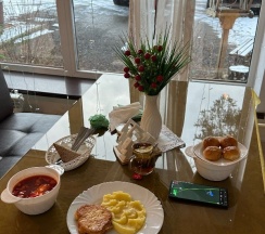 Чистый ухоженный номер, с кошечкой пустили, что очень радует! Горячий душ! Утром горячие блинчики и сырники вкусные! Спасибо!