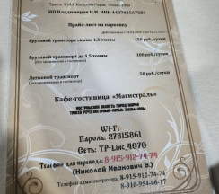 Остановились в гостинице, цены очень приемлемые, все устроило. Кафе очень понравилось, все было вкусно, и супы и блинчики. В это место еще бы заехали, спасибо вам!