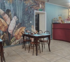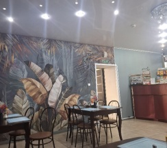 Приехали около 21 часа повесть и переночевать. В кафе шумная компания отмечала ДР. Администратор милая и шустрая, одна успевала и нас обслуживать и компанию. Меню не богатое, но выбранная нами еда была довольно вкусно приготовлена. Что касается гостиницы: номер на 3 - требует ремонта. Мне как женщина, не хватало полочки у раковины (они отломаны). Душевой кабинкой не пользовались, не вызвала доверия)) - она на высоте см 30 установлена, не понятно на что, в углах плесень по герметику, но поддон был идеально чистый. В принципе в номере чисто. Одеяло было в комоде (ни сразу нашли). Ну и шумная компания не давала мне уснуть, когда они выходили на улицу, громко орали, но муж уснул сразу и его это не беспокоило.