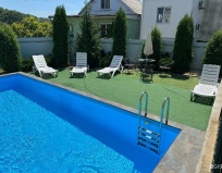 Крутой гостевой дом, есть бассейн, очень вкусная столовая, до моря два шага, по нашему желанию хозяин Денис организовал нам шашлычок. Есть где купить настоящее домашнее вино, чачу и коньяк. Подземный паркинг для авто. Все очень понравилось, приедем еще!