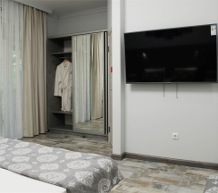 Уютные стандартные номера расположены на втором этаже, в номерах есть всё необходимое для комфортного отдыха – удобные кровати , Smart телевизор 4К с диагональю 50 дюймов, холодильник, кондиционер, сан.узел. Высокоскоростной бесплатный Wi-Fi