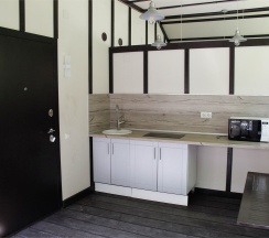 Уютные улучшенные апартаменты расположены в небольших деревянных домиках, в них есть все необходимое для комфортного отдыха – кровати , телевизор с диагональю 43 дюйма, холодильник, кондиционер, сан.узел. Все номера укомплектованы наборами кастрюль, посудой, всем для приготовления еды.Своя отдельная терраса.