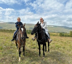 Тут есть бассейн. Летом можно погладить, покормить, покататься на лошадках. А в зиму покататься на ватрушках и т. д. А можно исследовать Лаго-Наки!