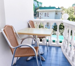Отель La Russ уютный и небольшой отель с просторными верандами, холлами, зеленой территорией и баром. Так же для удобства гостей в отеле оборудована кухня общего пользования, где имеется газовая плита, микроволновая печь и вся необходимая посуда. Номерной фонд располагается на втором и третьем этажах и составляет 10 просторных номеров площадью 20-24 м кв, в 8 из них имеется балкон. Отель находится в центре Адлера в 450 м от пляжа, рядом, в 200 м, имеется ТЦ Апельсин, где есть магазины, рестораны, столовая и рынок. Так же нашем отеле гостям предоставляется вкусный завтрак. По отзывам гостей отель имеет удачное расположение с точки зрения транспортной доступности.