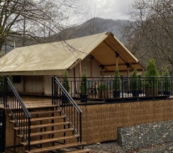 Случайно открыли для себя это место, год назад заезжали сюда в ресторан и были приятно удивлены! Решили вернуться сюда уже как постояльцы! Отличное место! В дали от городского шума! Мы с дочкой остановили свой выбор на глэмпинге! Все было супер! Тихо, спокойно! Утром, по желанию, проводят зарядку! Мы ходили заниматься к реке и потом в ней купались! Заряд бодрости на весь день!
