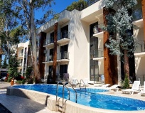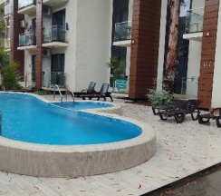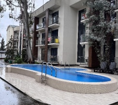 Ночевали в этом комплексе весь отпуск. Все понравилось. Номера чистые. Есть балконы. В нашем номере была кухня, стиральная машина, телевизор,фен, утюг, посуда. Удивило без контактное заселение. Есть бесеин во дворе и шезлонги. Администратору отдельное спасибо. Реагировали оперативно.