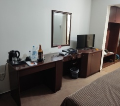 Довольно таки приличная гостиница. Каждый день уборка номеров. Бутилированная питьевая вода, чай, кофе. Если лень самому кипятить воду, в фойе стоят кулеры с водой. Были буквально неделю назад, в комнатах очень тепло, приходилось немного открывать окно. Кто-то пишет в комментариях, что на завтрак нужно было ходить в соседнее здание. Нам это не мешало, кушали и шли по командировочным делам.