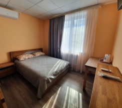 Остановились в данном отеле семьей, номер забронировали заранее, двухместный, на 3 этаже. Номер не большой, но уютный. Администратор встретила нас как только мы подъехали к отелю, есть закрытая стоянка для авто. Зайдя в здание приятный запах, не прокуренный, т.к. курение запрещено. В номере чистота, во всем, чистое постельное, полотенца, туалетные принадлежности, тапочки (редко такое встретишь), чай, кофе. На втором этаже есть микроволновка, кулер с горячей/холодной водой. В номере кондиционер, холодильник, столик, стул и двухспальная кровать собственно. Из минусов слышимость с лестницы, не все постояльцы соблюдают тишину, ведь в основном люди останавливаются на ночлег и отдохнуть с дороги и хочется тишины. Но это не критично. При бронировании номера напрямую по указанному телефону, приятный бонус при заселении и оплате.