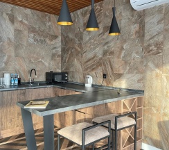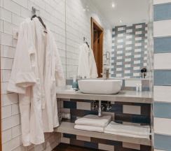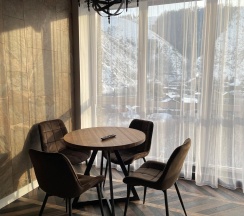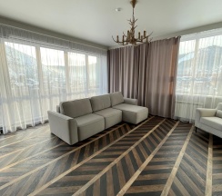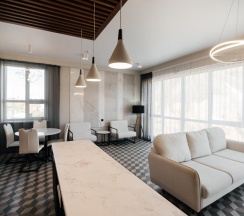 Номер расположен на последнем этаже гостиничного комплекса. Из панорамных окон открывается шикарный вид на Бобровый лог и природу заповедника Столбы. Просторная прихожая, зал-студия, совмещенная с зоной кухни, и уютная спальня. Номер оснащен всем необходимым для длительного проживания: посуда, микроволновка, чайник, мини-холодильник. В номере установлен диван-кровать, который с легкостью трансформируется в спальное место для двоих гостей. В спальне установлена большая кровать с ортопедическим матрасом для вашего комфортного отдыха. В санузле душ/ванная, набор гигиенический принадлежностей, халат, тапочки, набор полотенец, фен.