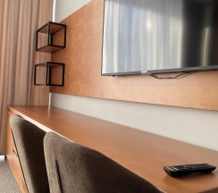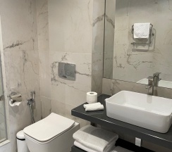 В номере: одна двуспальная кровать или 2 раздельных, телефон, телевизор, мини — холодильник. В санузле: душ/ванная, фен, комплект для индивидуального пользования, набор полотенец, халаты и тапочки предоставляются по запросу.