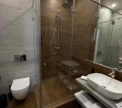 Брали апартаменты, на фото все красиво, но по факту номер конечно следует уже освежить. Нам не понравилось уборка в номере, кровать заправили, протерли все, а полотенца не поменяли, расходники: гель для душа, зубные щетки не положили, пришлось неоднократно просить, чтобы принесли. Второй ключ не выдали, только один, немного неудобно было. А так в целом все хорошо