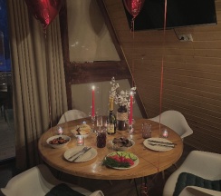 Прекрасный домик !!!! Уютный , милый , в тоже время - очень вместительный ! Есть всё необходимое , чтобы отметить торжество или тихий романтик ❤️ обязательно еще раз посетим этот домик )))) удобное место расположения . Вот такую красоту мы там устроили )))