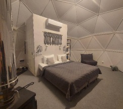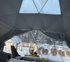 Отличное место чтобы отдохнуть и перезагрузиться) жили в куполе, он очень просторный и тёплый, огромное окно идеально для фотографий😊 побродить по территории одно удовольствие, есть много интересных деталей) из развлечений мы выбрали катание на квадроциклах и остались в восторге)