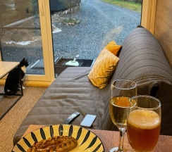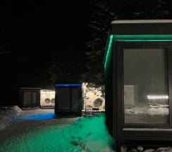 Выбрали круглый домик, в нем всё новое, всё чисто, ничего лишнего, приятно находиться и даже выходить не хотелось. Душ на высшем уровне. В домике мини холодильник, стол и посуда. Теплые полы, благодаря чему в домике тепло и уютно.