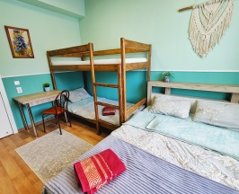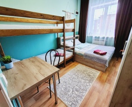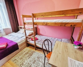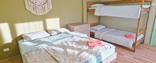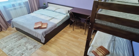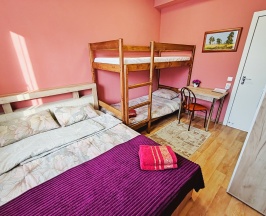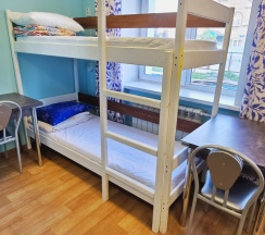 номер 6, 7, двухспальная кровать 160х200, двухъярусная кровать 90х200, шкаф, стол, тумба, окно с видом на двор, улицу и горы,