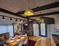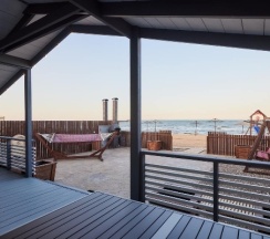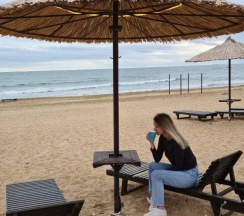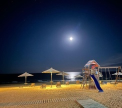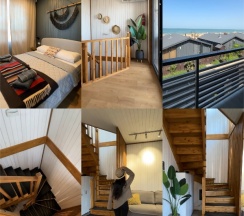 Дома прям на берегу моря, собственный пляж с лежаками. Ночью все красиво подсвечивается. Снимали 5-й дом, все удобно, но фото немного не соответствуют (стол был меньше, нас было 8 человек, все не поместились). Постельное белье пришлось добавлять, комплектов не хватило. На втором этаже две изолированные спальни, остальные спальные места в открытых комнатах - для большой компании не очень удобно. Ванная с туалетом только на первом этаже, на втором этаже - туалет без душа (ванной). Вид с балкона классный. Тихо и комфортно. По такой цене - отличный вариант для отдыха.