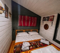 Мы забронировали домик номер 4, двухэтажный, как на фото. Домик уютный, у моря. Провели там два незабываемых дня, вдоволь купались. Еду привезли сами. Вода питьевая есть. Можно освежить одежду, бесплатно наши постирали👍