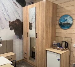Очень крутое место! Тихо, уютно, чисто, красиво. Весь номер из дерева. Запах невероятно приятный! Вид из окна на реку. Рекомендую к посещению!