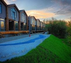Загородный отель в городе! Заселились вечером, дождь, прошлись по территории совсем немного - красиво! Номер на 1 этаже - уютно, чуть не хватило эргономики по мебели и фото обои на стене не очень вписываются в общий дизайн