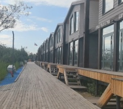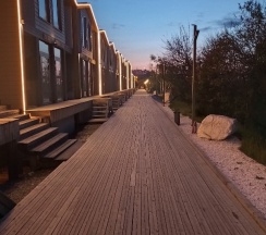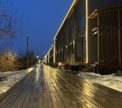 Прогулялись перед завтраком по территории, еще идет стройка, но все равно атмосферно, разглядывали домики - они с разными картинами.