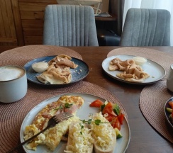 Накануне предупредили прийти до 9 на завтрак, позже ребята из соседнего лагеря придут. Мы успели комфортно покушать и насладиться природой и видами!