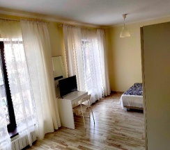 Понравилось: Мы отдыхали с мужем вдвоём!Месторасположение хорошее,до моря близко.Очень приветливый персонал.Наталья хозяйка, всё рассказала, показала.Даже когда уезжали забыли в номере сувениры,она нам их отправила, спасибо вам огромное!Номер очень чистый, уютный.Ванная комната в номере,кухня отдельно в которой есть всё необходимое.Вообщем всё понравилось, ещё приедем обязательно!