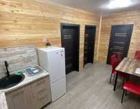 Мы встречали здесь новый год. Помимо нас с нами ещё отмечали праздник наши гости, с администрацией договорились, пошли на встречу, спасибо большое им за это! Девушки-администраторы встретили нас радушно и даже организовали вечером на улице детям праздник с запусканием фейерверка и раздачей сладких подарков! Отличное место для проживания семьёй из 4 человек. У детей своя комната, у нас с мужем - своя. Кровати новые, не скрипят, большой стол, на кухне места много, никто при готовке друг другу не мешал.) Всё чисто, полы тёплые, вместительный холодильник, кухонная посуда,как новая! Предусмотрено всё для комфортного пребывания - зубные щётки, паста, туал.бумага, освежитель, гель для душа, шампунь, мыло, фен, полотенца, тапочки. В ванной всё работает без перебоя - канализация, душ, вода с хорошим напором.