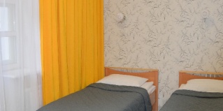 Уютный номер для размещения одного или двух человек. Площадь номера от 9 м2. В комнате две односпальные кровати (шириной 90 см), телевизор,холодильник.