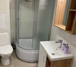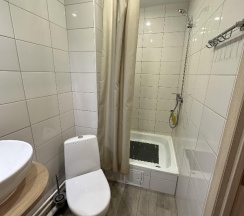 В душевой кабине отличный напор воды, есть очень горячая вода, не засорен слив.