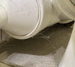 В ванной комнате во время принятия душа протекла вода на пол, затерли полотенцем и оказалось что пол довольно грязный. За унитазом паутина.
