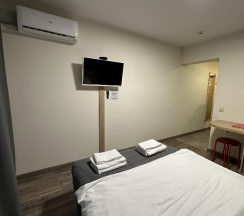В целом номер очень понравился. Кровать удобная, не скрипит (только подушки большие), одеяло теплое. Телевизор и кондиционер работают. Вай фай есть.