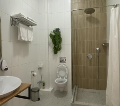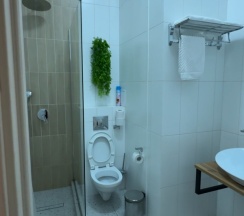 Номер с огрооооооомной туалетной комнатой, халаты, кондиционер все есть. В коридоре встроенная гладильная доска с новым утюгом. Вкусные завтраки. Приятный персонал. Чисто.