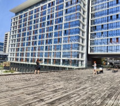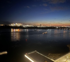 Номер был просторным и светлым, с огромными окнами, из которых открывался потрясающий вид на реку.Утром было приятно просыпаться и наслаждаться видом, особенно с чашечкой кофе.Интерьер оформлен в современном стиле, а все удобства работали.