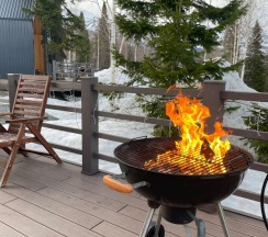 Приезжали на выходные. У дома большая терраса, есть гриль, чтобы пожарить мясо.