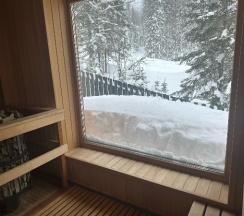 Останавливалась тут в ноябре прошлого года с двумя подростками. Сами домики очень понравились, тихо и спокойно. После шумного города - это то, что надо! единственный нюанс - очень много снега), хотя наверно это плюс
