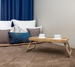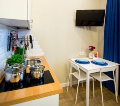 Апартаменты оборудованы всем самым необходимым: телевизор, холодильник, микроволновка, чайник, стиральная машина, фен, утюг. Ортопедическая двуспальная кровать. Скоростной бесплатный wi-fi и более 130 ТВ-каналов. Свежая постель, махровые полотенца, бамбуковые подушки и одеяла, сушилка для белья, гладильная доска, шампунь и гель для душа. Посуда, столовые приборы, кастрюли и сковороды разного размера. Квалифицированные горничные и администраторы, технический персонал. Чай, сахар, соль.