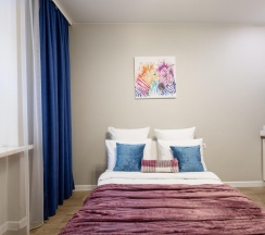 Комната уютная, все необходимое есть. Места хватает для комфортного проживания вдвоем. Апартаменты располагаются недалеко от центра города, рядом есть магазины.