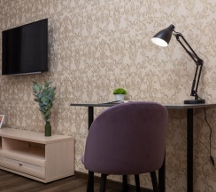 Апартаменты оборудованы всем самым необходимым: телевизор, холодильник, микроволновка, чайник, стиральная машина, пылесос, фен, утюг. Двуспальная ортопедическая кровать и два дивана, 6 спальных мест. Скоростной бесплатный wi-fi и более 130 ТВ-каналов. Свежая постель, махровые полотенца, бамбуковые подушки и одеяла, сушилка для белья, гладильная доска, шампунь и гель для душа. Посуда, столовые приборы, кастрюли и сковороды разного размера. Квалифицированные горничные и администраторы, технический персонал.