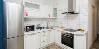 Апартаменты оборудованы всем самым необходимым: телевизор, холодильник, микроволновка, чайник, стиральная машина, фен, утюг, ортопедическая двуспальная кровать и диван, коростной wi-fi и более 130 ТВ-каналов, свежая постель, махровые полотенца, бамбуковые подушки и одеяла, сушилка для белья, гладильная доска, шампунь и гель для душа, посуда, столовые приборы, кастрюли и сковороды разного размера, квалифицированные горничные и администраторы, технический персонал, чай, сахар, соль.