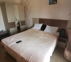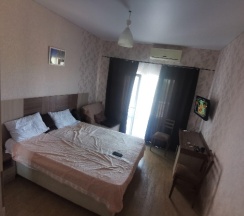 Чисто, тихо, уютно. Магазины, столовые рядом. До пляжа минут 10 где-то. Все необходимое есть, кондиционер, телевизор, балкон, чайник, посуда, душ, туалет в номере. Кровать, матрас, постельное белье супер. Утюг, фен, микроволновка, плита есть на этаже. С соседями практически не встречались, хозяев вообще не видели. В общем очень комфортно отдыхать. Приехали раньше времени, нам разрешили оставить вещи, это большой плюс.