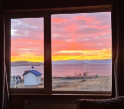 Отличные хозяева гостиницы муж и жена, прекрасные душой люди и всегда готовые оказать посильную помощь. Например, в момент нашего пребывания на Ольхоне в соседнем номере жил 60-летний байкер из Германии, который путешествовал на своём мотоцикле по РФ. Во время отъезда с острова, в дороге, он получил травмы/переломы. Сергей, хозяин гостиницы, который хорошо знает несколько иностранных языков, помогал ему в коммуникациях с больницей и не только... И это не единственный случай помощи, девушки на машине заехали на камень рядом с церковью и гостиным домом, несколько часов забот Сергея с товарищами и дамы смогли уехать на целом автомобиле. Так что любому путнику здесь рады. Рекомендую остановиться у Сергея, в пешей доступности Бурхан/Шаманка, Сарайский пляж. Блюда можно приготовить самостоятельно, в доме для готовки есть все принадлежности. Вид из гостиницы на церковь и Байкал. Отдельный поклон супруге Сергея.