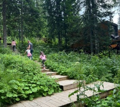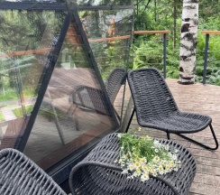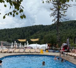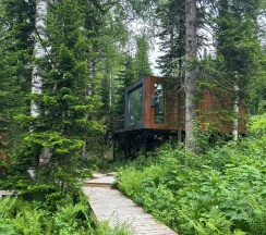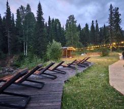 Шикарный отельный комплекс "Тайгара" встретил нас проливным дождем)) Очень порадовало наличие зонтов для гостей на ресепшене, что позволило нам сухими добраться до ресторана "Курум". Здесь нас встретила восхитительная официант Светлана - общая любовь нашей семьи на всё время пребывания в отеле. Раз упомянула ресторан, остановлюсь на питании. Во время нашего пребывания в отеле работало 4 заведения: ресторан "Курум", бар Hygge, Том-Ям-бар и кафе "Небо" на вершине горы Зелёная. Везде вкусно, хорошие порции (омлет на завтрак в Hygge запросто можно взять один на двоих), вполне приемлемые цены (такие же, как в Новосибирске, - опасались, что в курортном месте будет в три раза дороже). Единственная особенность - работают до 18.00, ресторан до 20.00, но кухня заканчивает работу раньше (видимо следите за фигурой гостей - после шести не есть))). Отдыхали семьей из 4 человек в Бунгало Дуо. Домик ооочень понравился!!! Уютно, тепло, горячая водичка, свежее постельное белье, ароматные гель для душа и мыло. Рядом с домиками три мангальные зоны. Слетали на такси на 8 мин в Таштагол за мясом и пожарили шашлыки. При заселении дарят Skypass - один подъём на каждого гостя. Когда позволила погода, поднялись на г. Зелёная - виды шикарные. Обратно добирались пешочком по экотропе, заботливо обозначенной цветными ленточками через каждые 3-5 деревьев - не заблудится даже ребёнок)) (наши дочери 11 и 12 лет шли впереди). На территории отеля есть верёвочный парк - жутко интересный и большой зиплайн, тоже жуткий и интересный)) Также было увлекательно посетить экскурсию в Хаски-парк - прекрасные хаски-спортсмены и очень увлечённый каюр-экскурсовод. Виды вдоль р. Мундыбаш шикарные!!! Даже если бы не было развлечений в виде верёвочного парка, зиплайна, хаски-парка, бассейна с подогревом, прогулки на лошадях, рыбалки в озере, мне бы хватило и их)) С удовольствием приедем к вам ещё раз! Удачи вам и процветания!