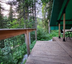 Не первый раз останавливаемся в глэмпинге, очень нравится атмосфера, журчание воды, пение птиц, красивая территория для прогулки и отдыха🌿